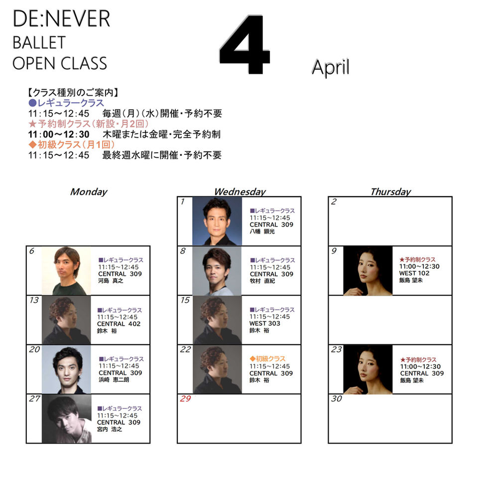 デネバーのバレエオープンクラスは様々な目的の方に来ていただいています。趣味でバレエを習っている方、プロを目指している方、多分野のダンサーで基礎としてバレエを学びたい方、バレエの先生、プロバレエダンサー等。バレエが好き!上達したい!という方ならどなたでも大歓迎です。都度払いのオープンクラス制度のため、日々の稽古に追加したり、好きな先生を受講したり、ご自身のスタイルに合わせて気軽に受講していただけます。各講師の担当する日は月毎に変わります。スケジュールをご確認ください。